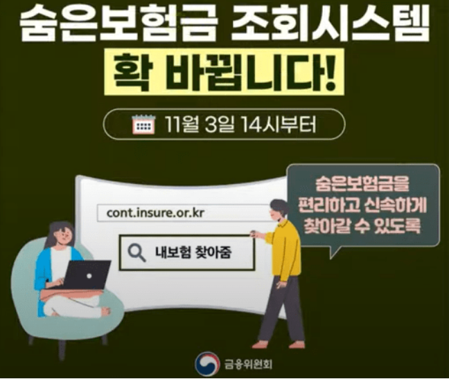 지난 2021년 11월부터는 숨은 보험금을 조회부터 청구까지 한번에 진행할 수 있도록 내보험 찾아줌을 시스템이 개선되어 보다 쉽게 내 보험금을 조회하고 찾을 수 있게 되었습니다.