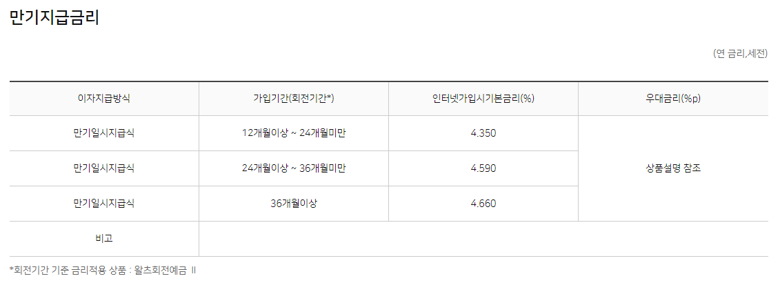 이자지급방법 : 만기지급식 : 만기(또는 중도해지 요청)시 이자를 지금