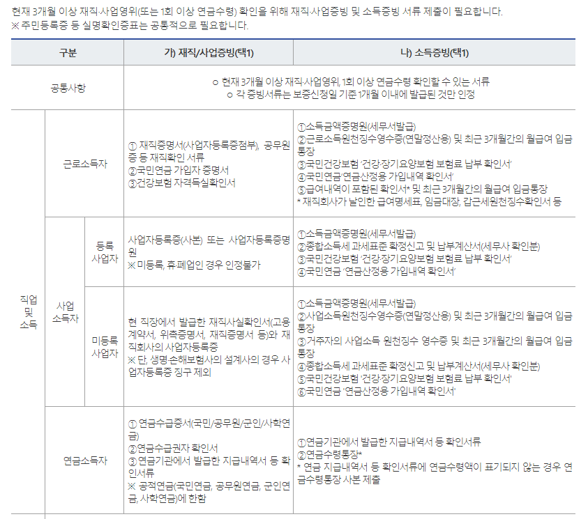 - 소득 신용조건 : 연소득 3,500만원 이하(신용평점 무관) or 신용평점 하위 100분의 20에 해당하면서 연 소득 4,500만원 이
