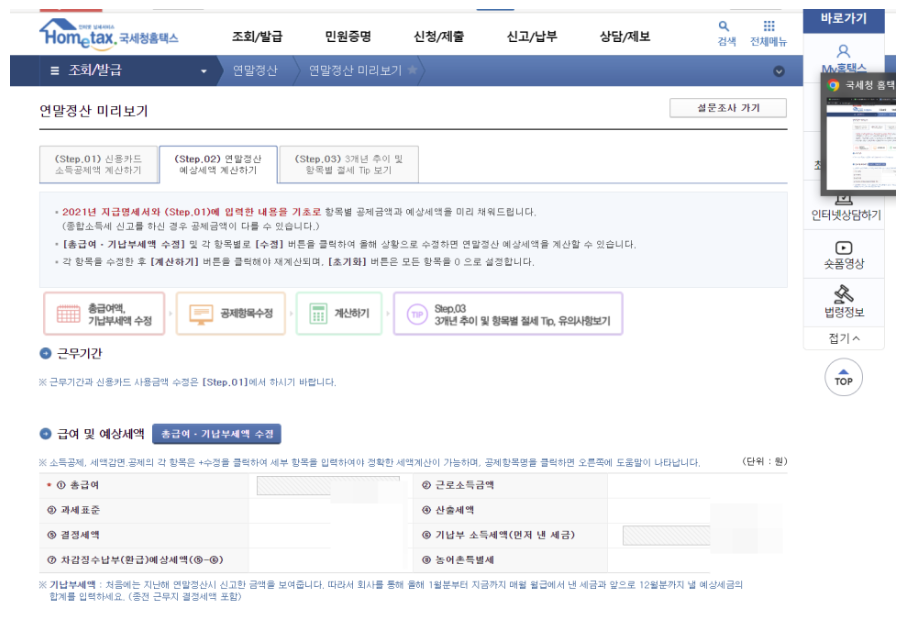 2단계에서는 가장 궁금해하는 예상세액을 조회할 수 있는데요.