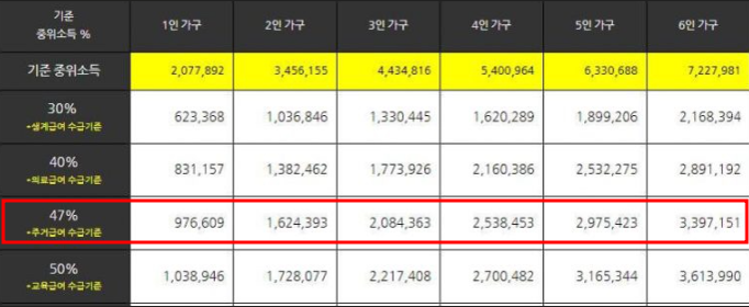 | 주거급여 | 소득인정액이 기준 중위소득 47% 이하 |