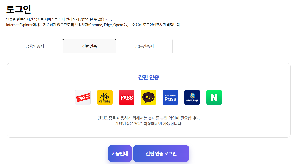 기초생활수급자 신청을 위해 간편인증 로그인을 해주셔야합니다. 네이버 및 카카오 등 편한 방법으로 로그인 해주세요.