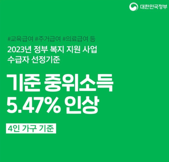 정부지원 정책 중 하나인 기초생활수급 급여에 대해 알아보겠습니다. 얼마전 2023년도 중위소득 기준이 발표되면서 내년도 기초생활수급자 자격요건도 알 수 있게 되었는데요. 매년 물가 상승에 따른 중위소득 기준도 올라가기 때문에 내년에는 약 9만명 정도가 추가로 기초생활수급자 자격으로 생활급여를 받을 수 있을 것으로 보고 있습니다.